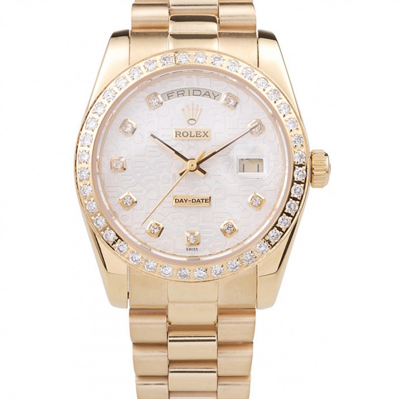 AAA Réplicas Relojes Rolex Day-Date 18k chapado en oro amarillo Dial blancos del acero inoxidable
