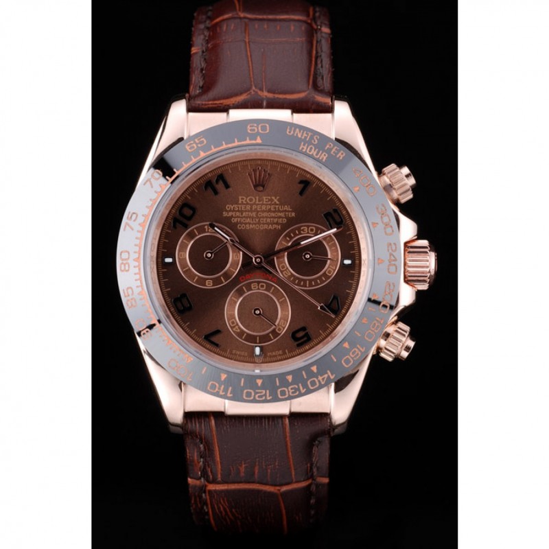 AAA Oro Rolex Daytona Rose Caso Brown Dial correa de cuero de Brown