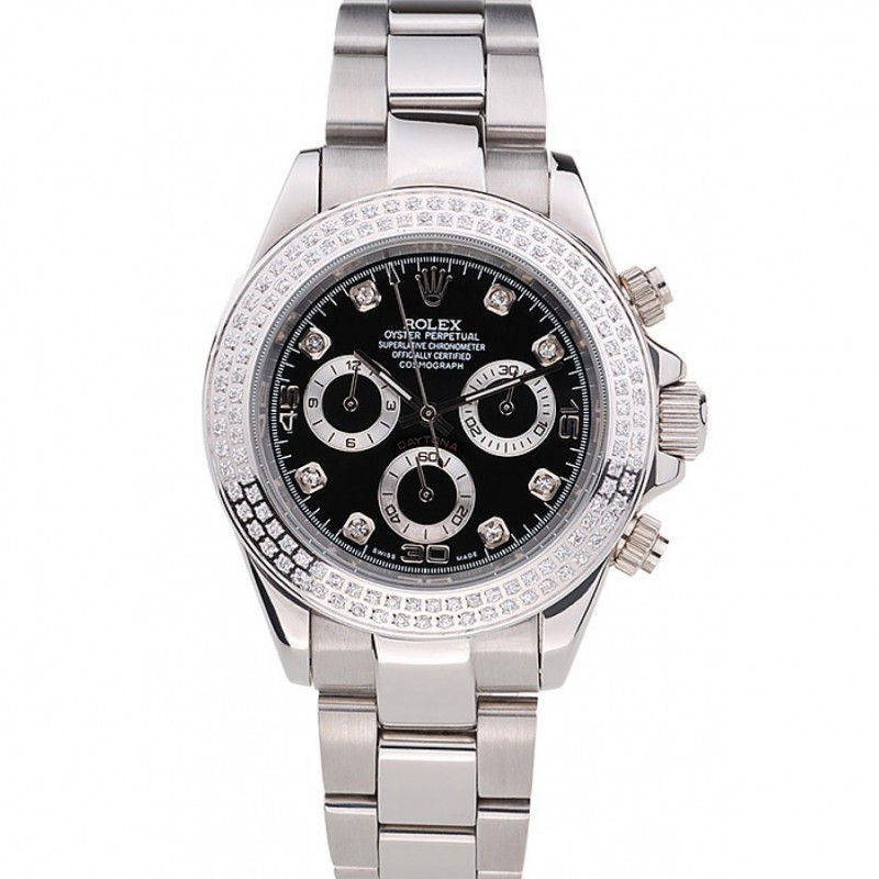 Dial Rolex Daytona Señora caja de acero inoxidable Bisel tachonado cristal tachonado cristal