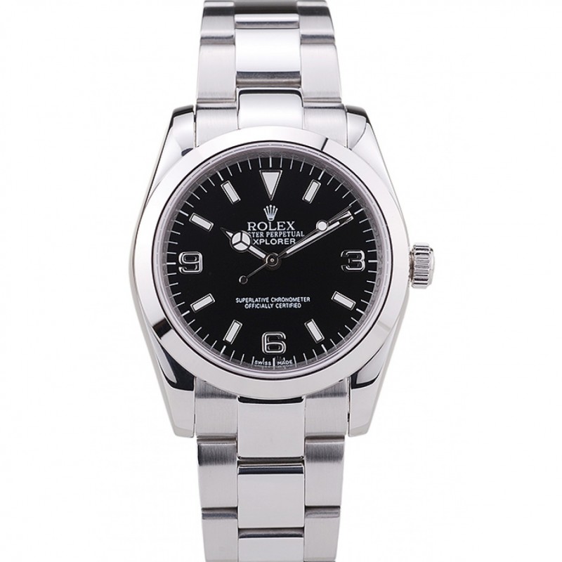 Barato Rolex Suizo Explorador de acero inoxidable Bisel Negro esfera de un reloj