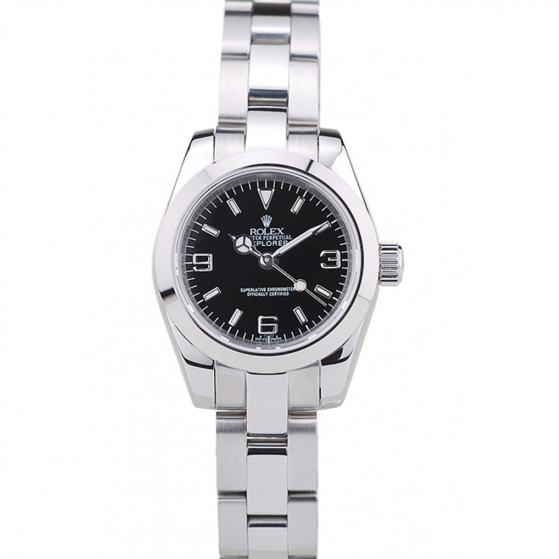 Dial Rolex Explorador de acero inoxidable Bisel negro