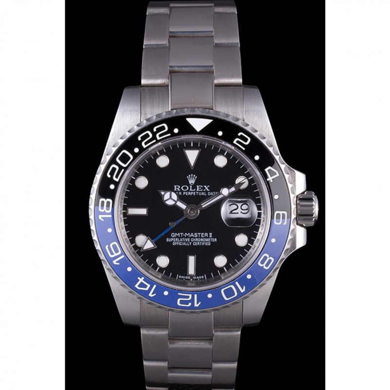 Alta calidad Rolex GMT Master II NEGRO / AZUL BISEL 2013 rl431 621393