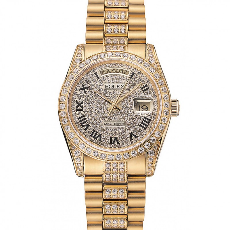 Rolex Day-Date Diamond Pave esfera de oro pulsera de diamantes 1453956