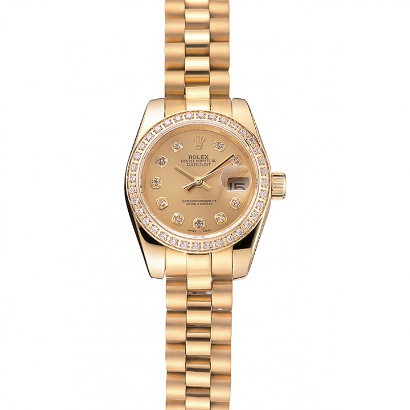 Rolex Lady-Datejust Champagne Dial Diamond Bisel pulsera de oro 1454095