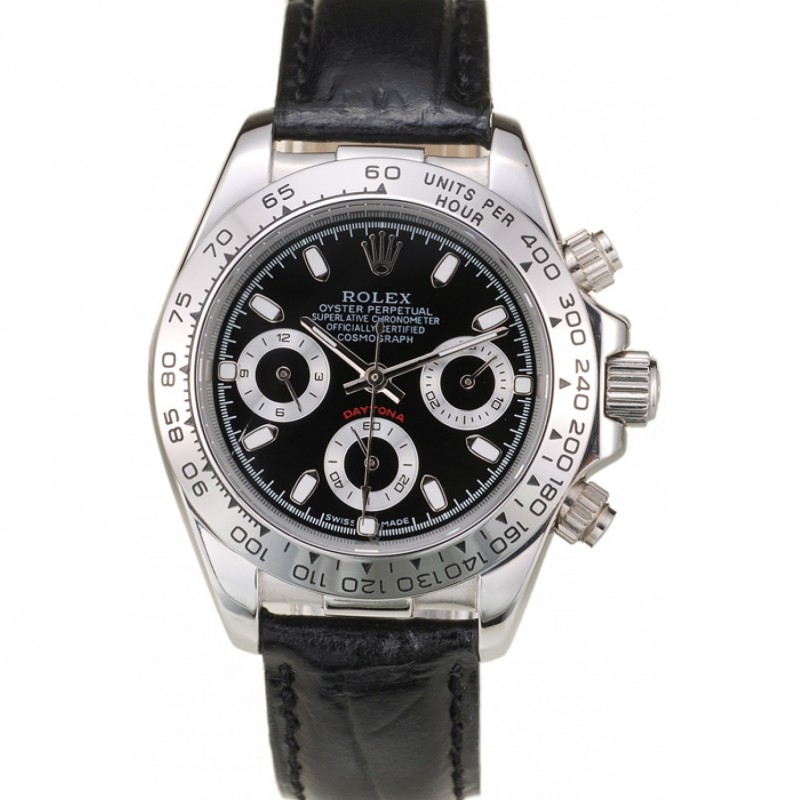 Rolex Daytona Señora caja de acero inoxidable Negro Dial correa de cuero Negro taquímetro