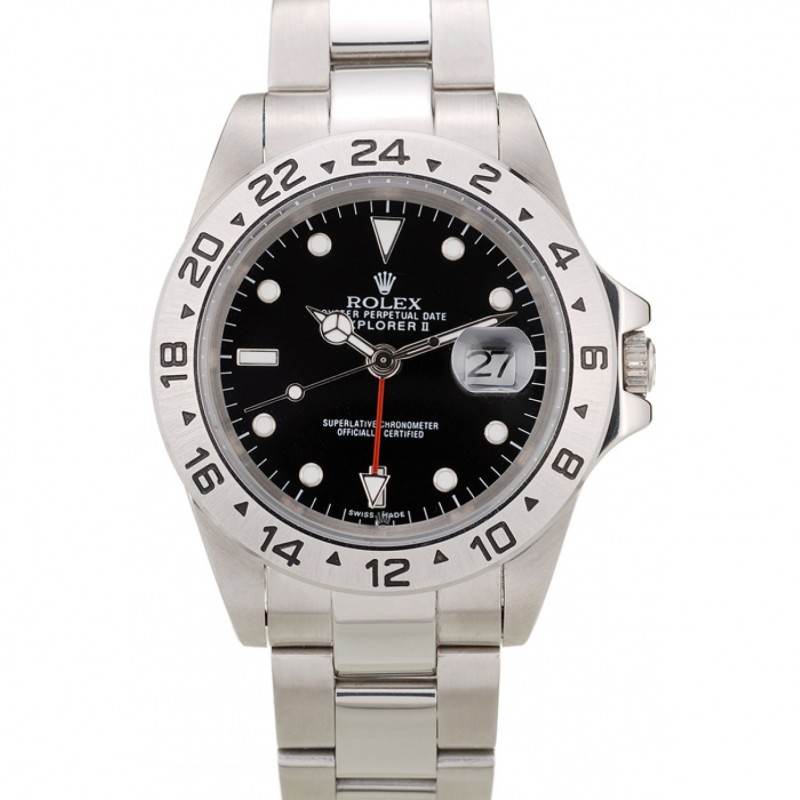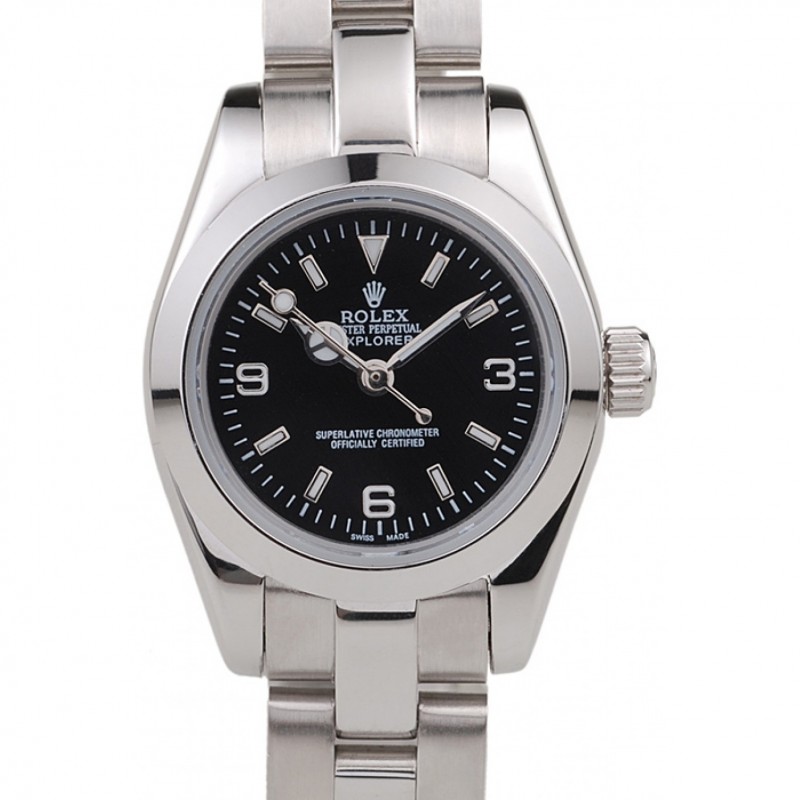 Barato Rolex Explorador de acero inoxidable pulido Dial Negro 98089