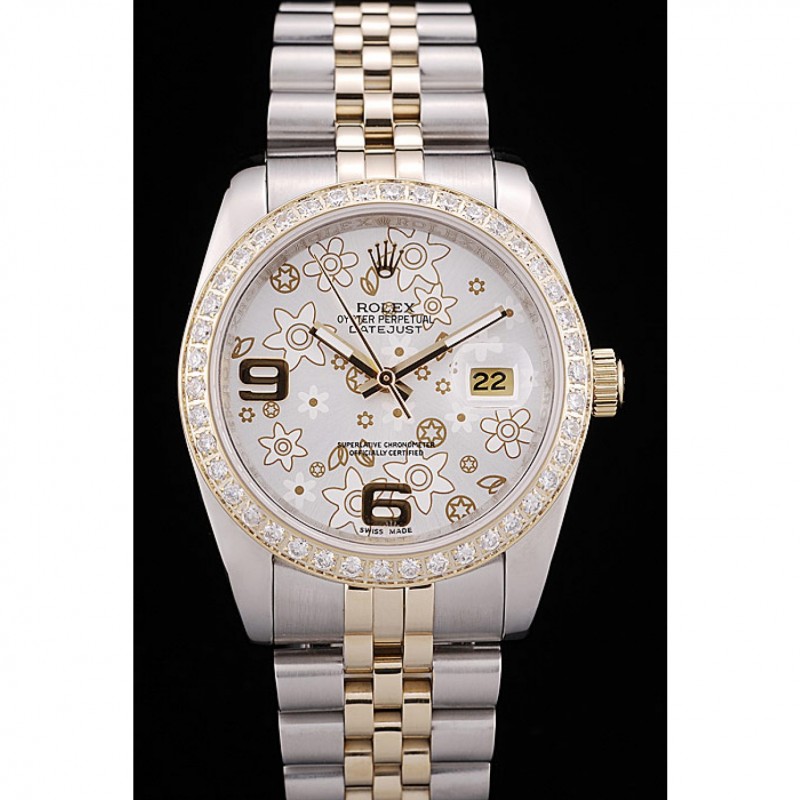 Rolex Daytona acero inoxidable cepillado caja de plata Flores Dial diamantes niquelados