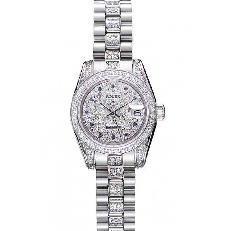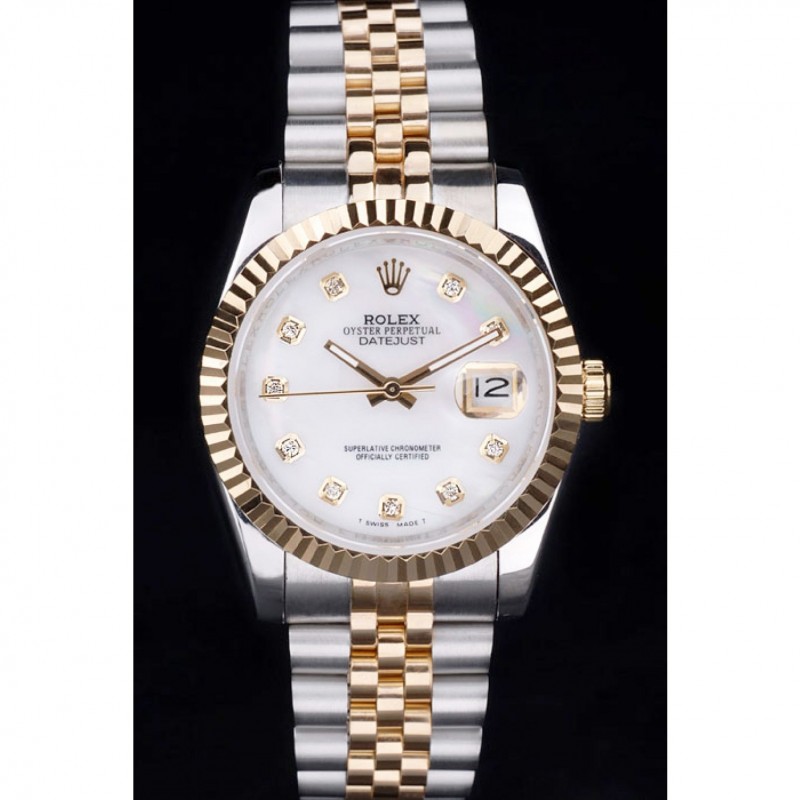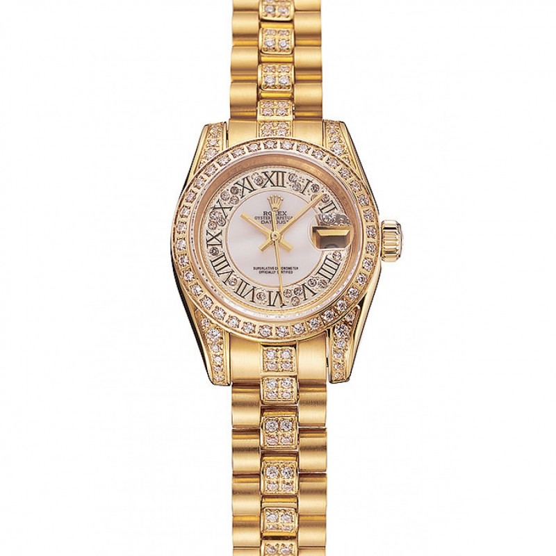 SS Réplicas Relojes Suiza Rolex DayJust Diamond Pave Blanco Dial de Oro Diamante pulsera 1453957