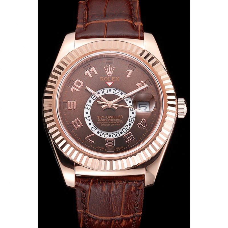 Rolex Sky Dweller Brown Dial correa de cuero de la caja de oro rosa Brown