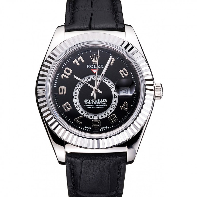 SS Rolex Sky Dweller Negro Dial correa de cuero caja de acero inoxidable Negro