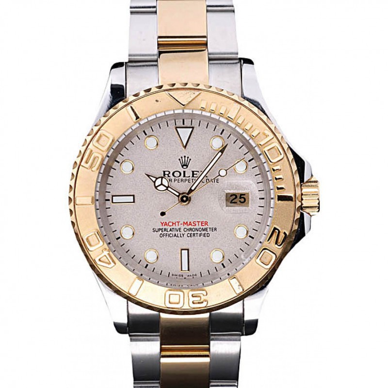 Rolex Yacht Master de oro rosa Dial dos tonos pulsera de acero inoxidable 1453864