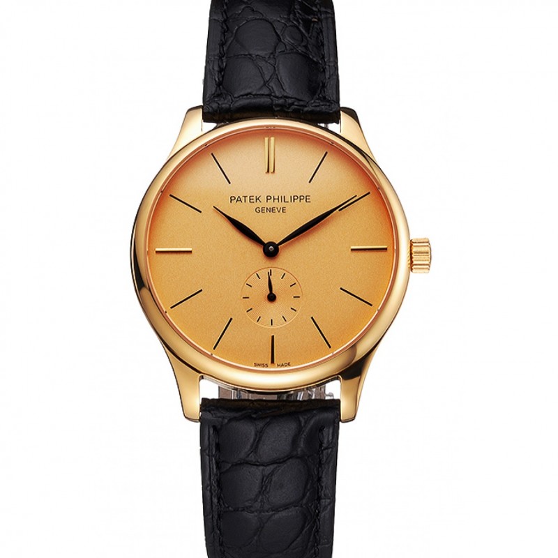 Patek Philippe de oro Dial correa de cuero de la caja Negro Oro