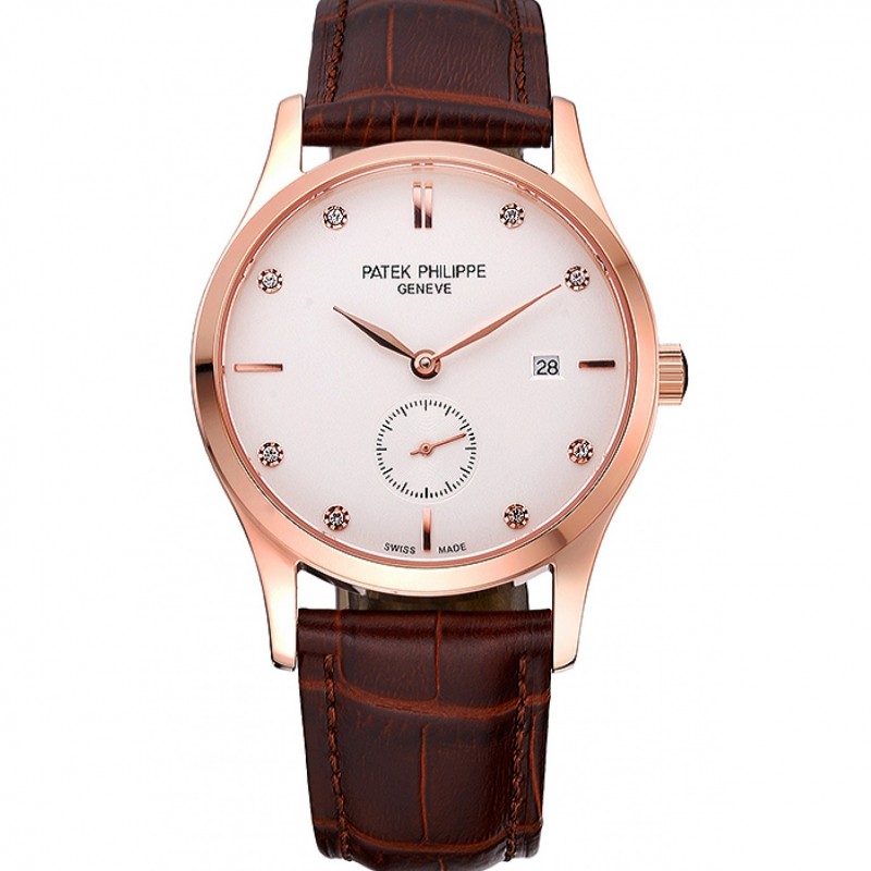 Gama alta Patek Philippe Fecha esfera blanca correa de cuero de la caja de oro rosa Negro