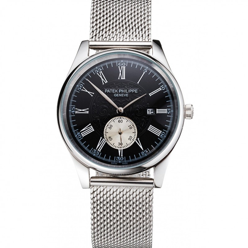Patek Philippe Calatrava pequeños segundos Negro grabado Dial Caja de acero inoxidable y pulsera