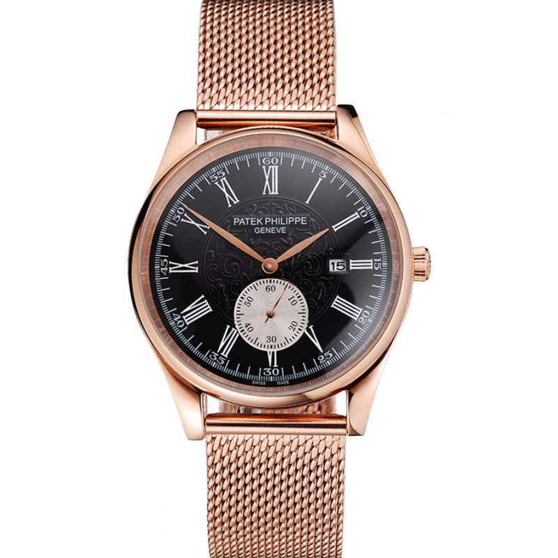 Patek Philippe Calatrava pequeños segundos Negro Dial grabado de oro rosa y pulsera