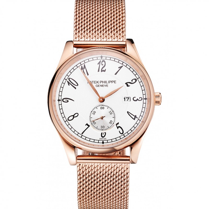 Patek Philippe Calatrava pequeños segundos Esfera Blanca Caja de oro rosa y pulsera