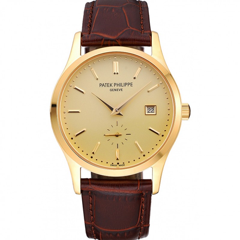 AAA Réplicas Relojes Patek Philippe de oro Dial Caja Oro Correa de cuero marrón 622846