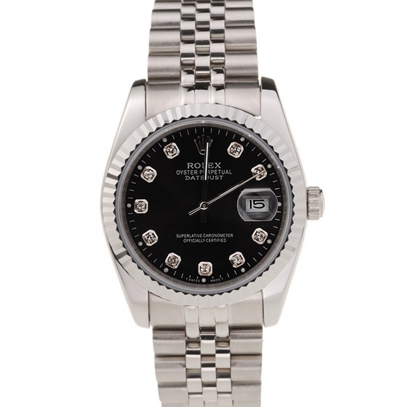 Rolex Datejust Negro Dial Dimond marcas de la hora Caja de acero inoxidable y pulsera