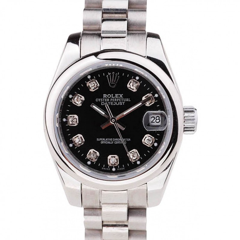 Rolex Datejust Negro Dial Dimond marcas de la hora Caja de acero inoxidable y pulsera