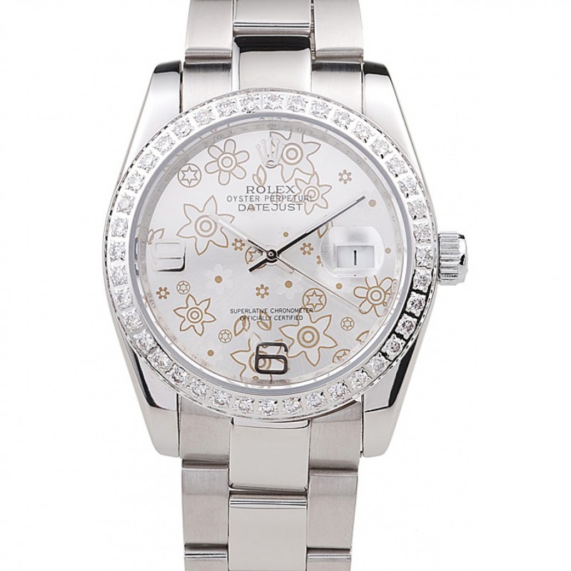 Alta calidad Rolex Datejust de acero inoxidable pulido de plata Flores Dial Diamante plateado 98081