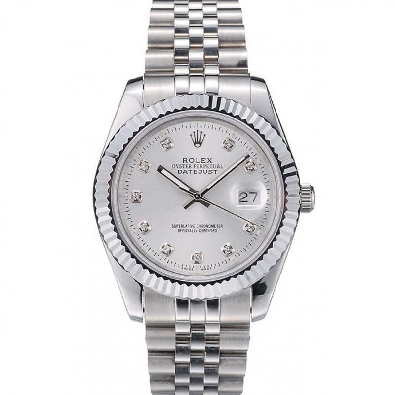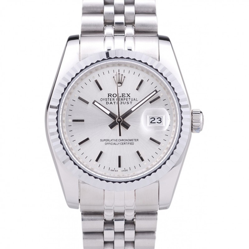 Rolex Datejust suiza de acero inoxidable acanalado Bisel Dial de plata 41996