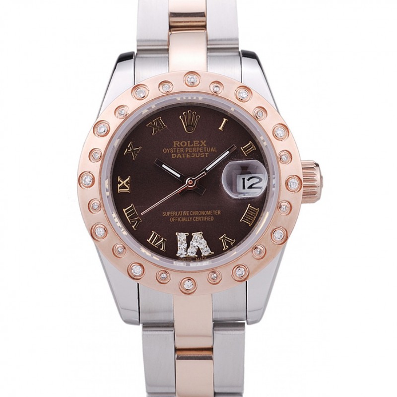 Gama alta Los diamantes de Louis Vuitton Rose oro pulido Bisel Brown Dial 7475
