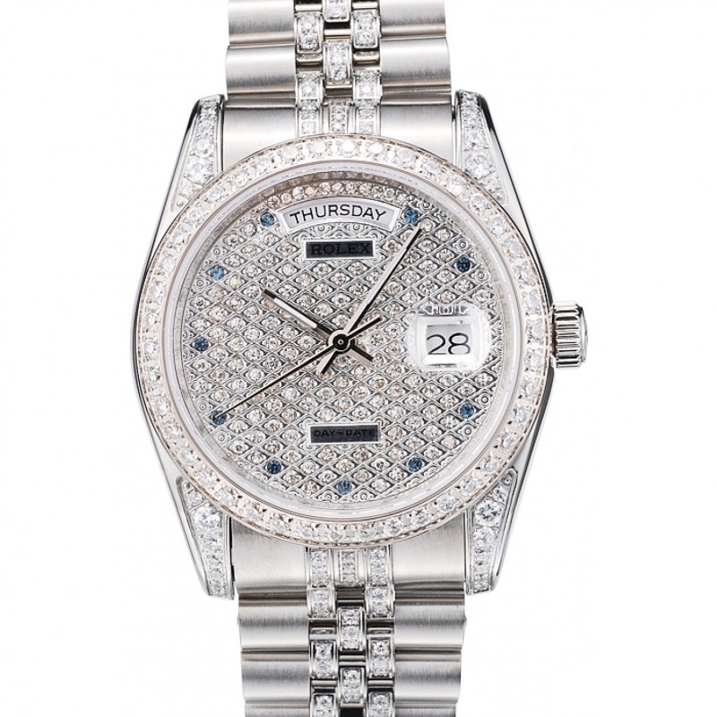 Pulsera de acero Rolex DayDate diamante plateado inoxidable diamante plateado Dial 41985
