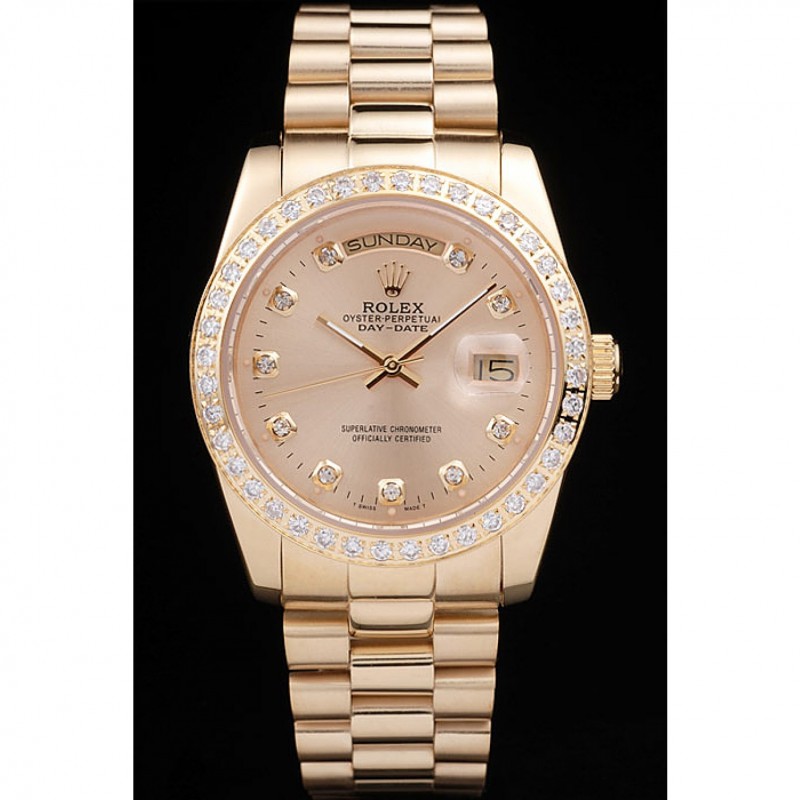 Mejor Suiza Rolex Fecha Día Diamante completo oro amarillo Pave