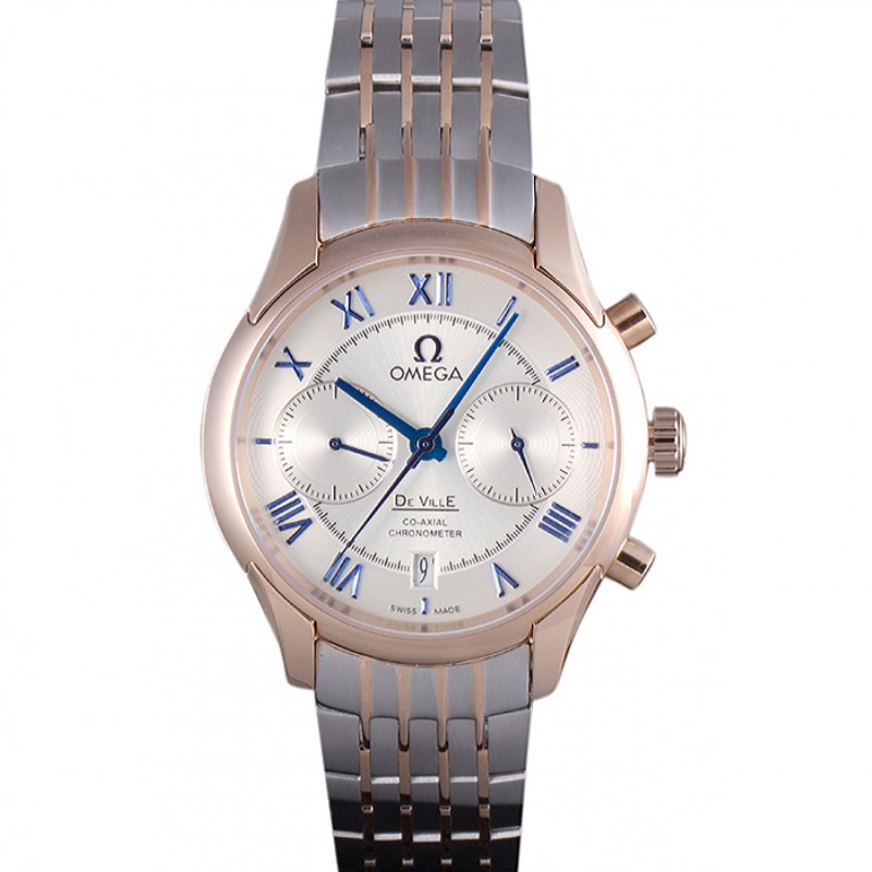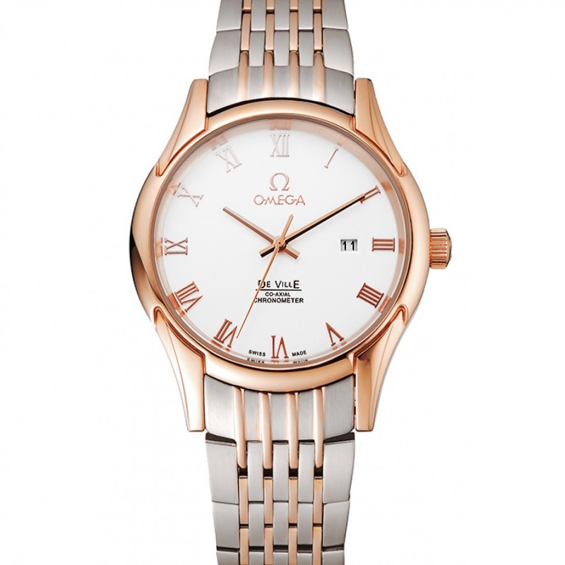 Omega De Ville Esfera Blanca Caja de oro rosa brazalete de dos tonos 1453781