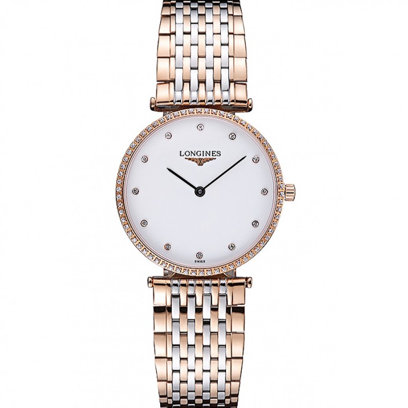 AAA Réplicas Relojes Longines La Grande Classique de oro rosa esfera blanca, bisel de diamantes Homme 622105