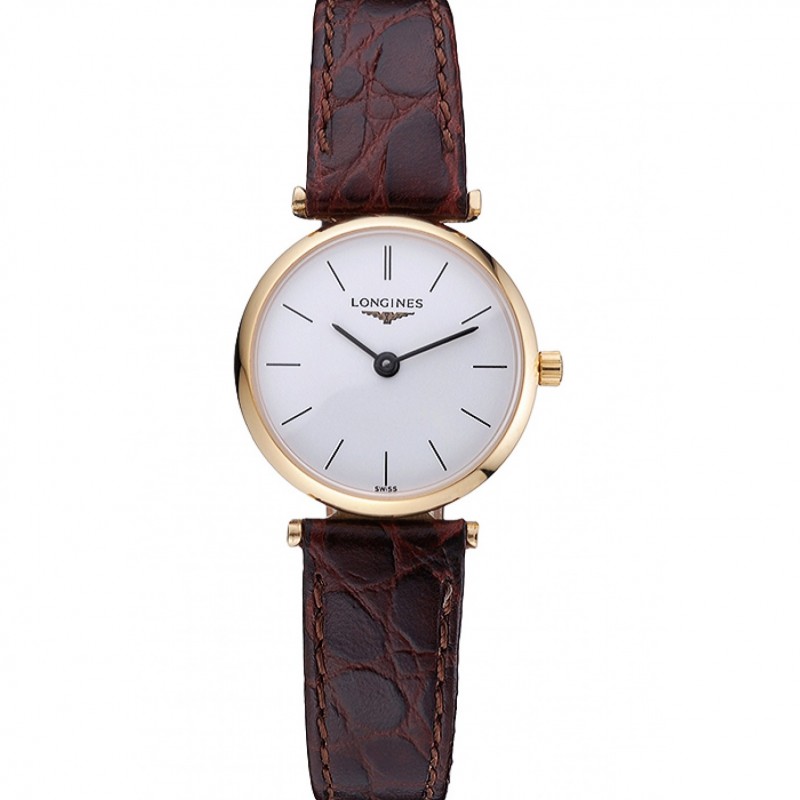 SS Réplicas Relojes Longines La Grande Classique esfera blanca correa de cuero marrón Femme 622120