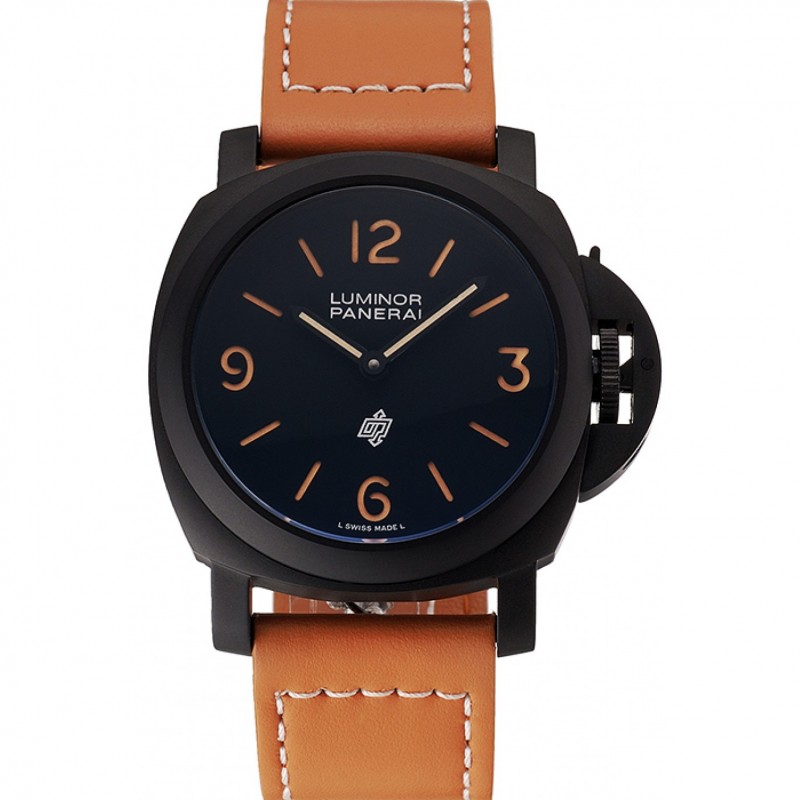 Lujo Réplicas Relojes Panerai Luminor Marina Negro Dial pulsera de cuero marrón