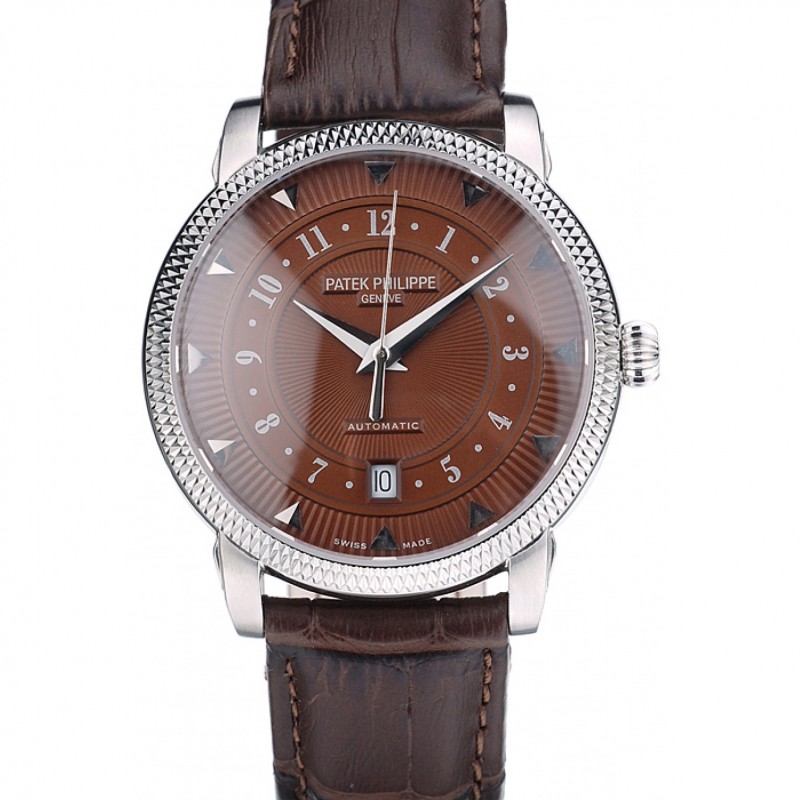 Patek Philippe Calatrava suizo Bisel acanalado Dial Brown Brown correa de cuero 7658