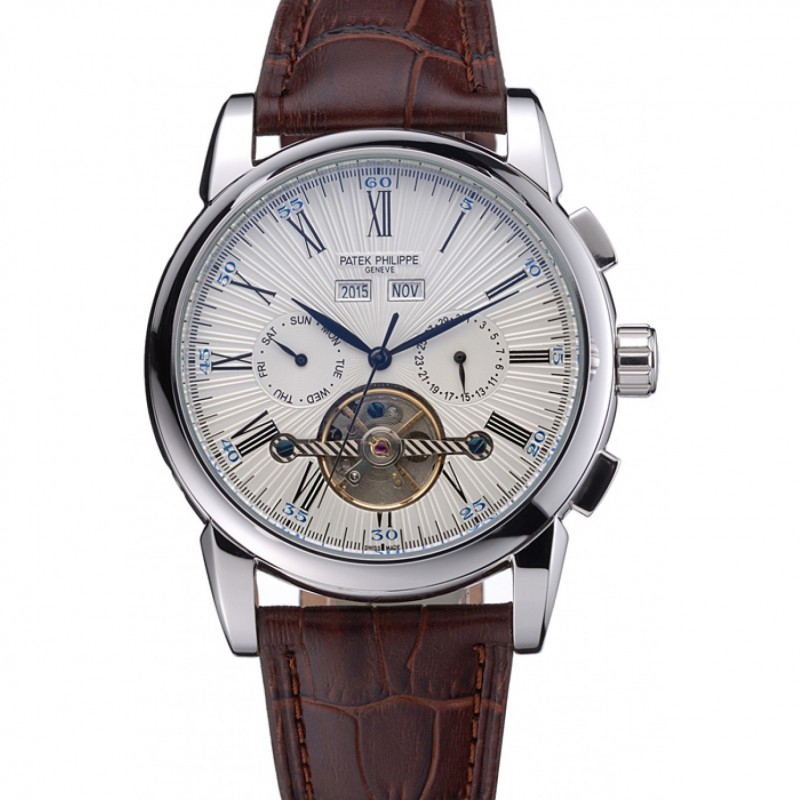Patek Philippe Grand complicaciones caja de acero inoxidable Esfera Blanca números romanos Brown correa de cuero 622254