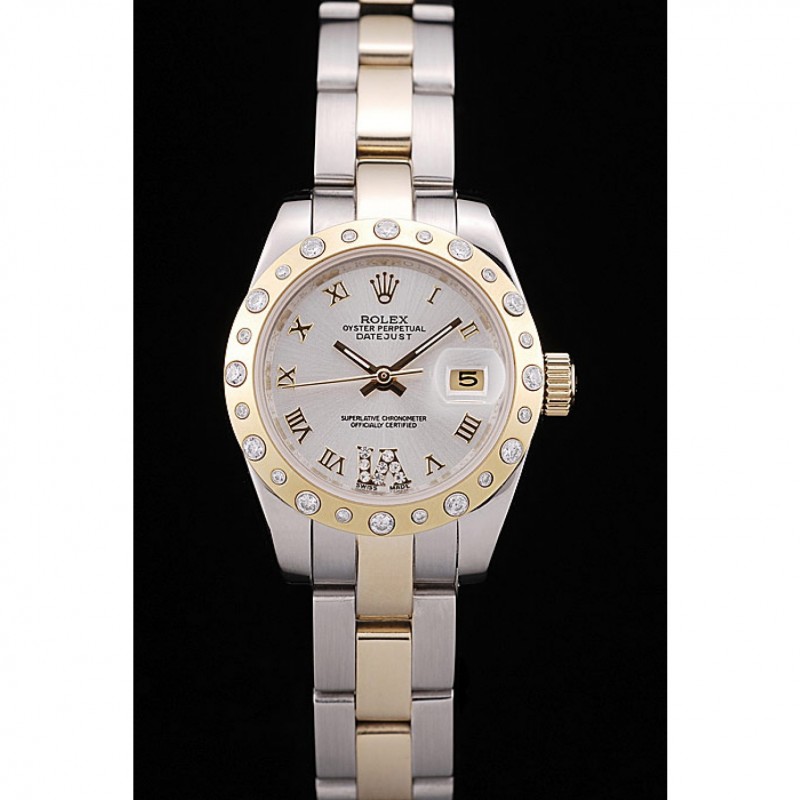 Suiza Rolex Day-Date Negro Dial caja del diamante de oro dos tonos pulsera de acero inoxidable 1453976