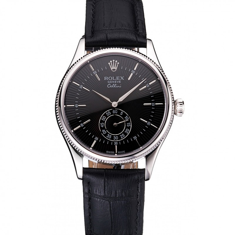 AAA Suiza Rolex Cellini Negro Dial correa de cuero caja de acero inoxidable Negro