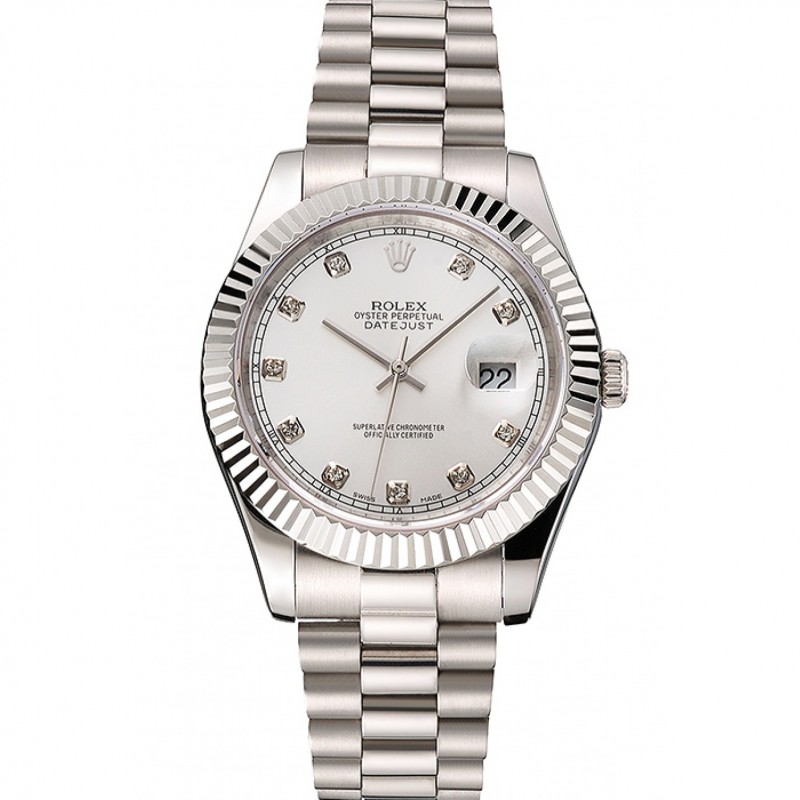 Suizo de plata Rolex Datejust Dial Caja de acero inoxidable y pulsera