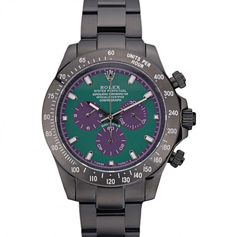 Rolex Daytona Negro Ion plateado taquímetro Negro correa de acero inoxidable Dial 80246 Verde