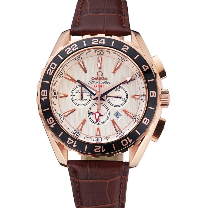 Omega Seamaster Aqua Terra Chrono GMT Marfil Dial de cuero marrón pulsera 622534