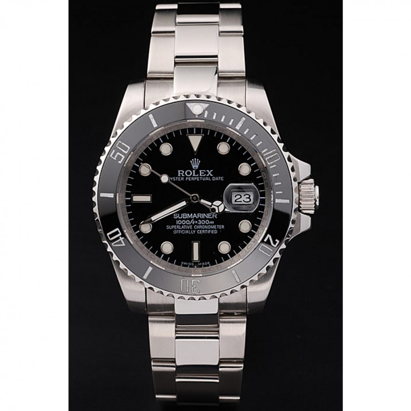 AAA Réplicas Relojes Rolex Submariner Negro de cerámica Bisel Negro Dial 98235