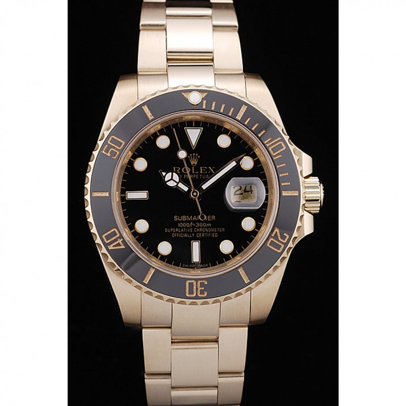 Lujo Réplicas Relojes Rolex Submariner Reloj de pared Negro-Oro 622476