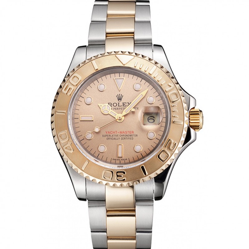 Suiza Rolex Yacht-Master Champagne Dial Caja de acero inoxidable bisel de oro pulsera de dos tonos