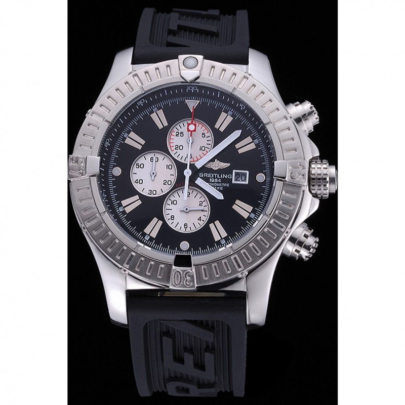Gama Alta Réplicas Relojes Breitling Evolución Negro Dial Negro Pulsera Caucho 622516