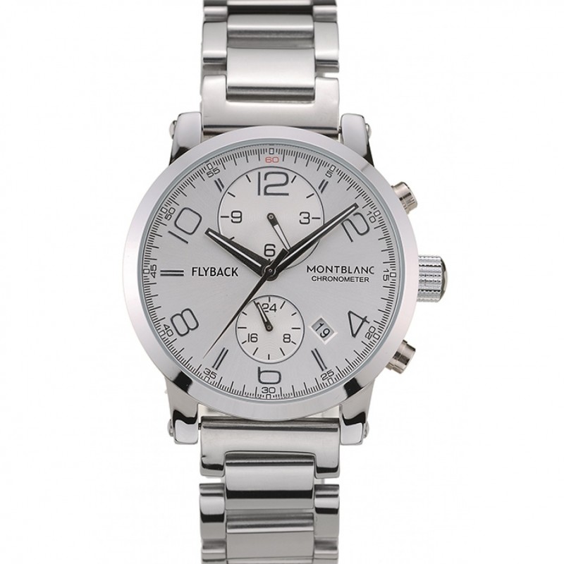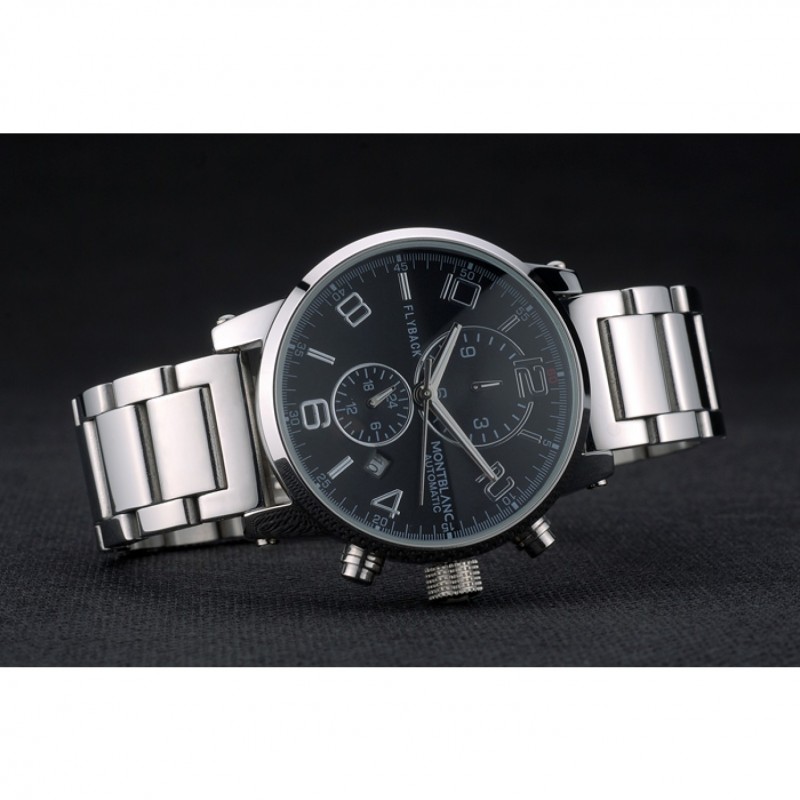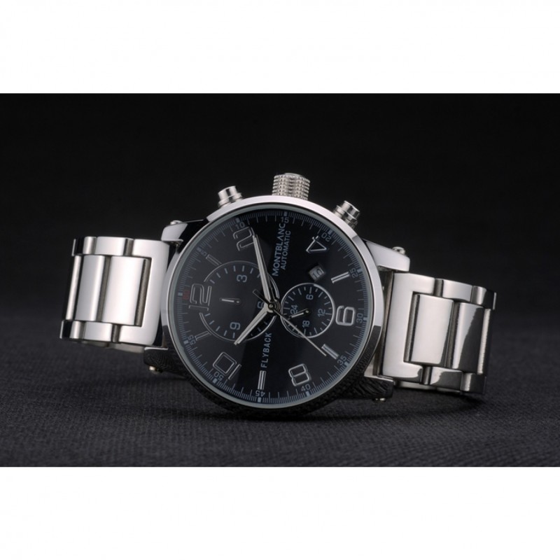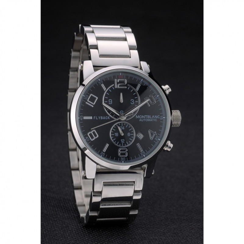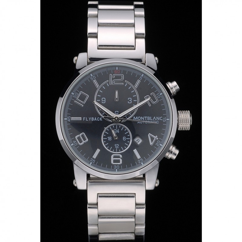 Corona: Pulido corona cutwork acero inoxidable con logo MontBlanc y dos coronas de botón de empuje de acero inoxidable pulido en cada lado de ella