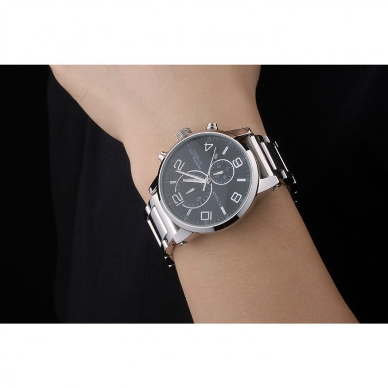 Crown: pulido corona cutwork de acero inoxidable con logo MontBlanc y dos pulido de empuje de acero inoxidable coronas de botones en cada lado de ella