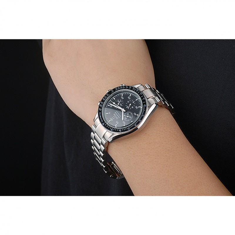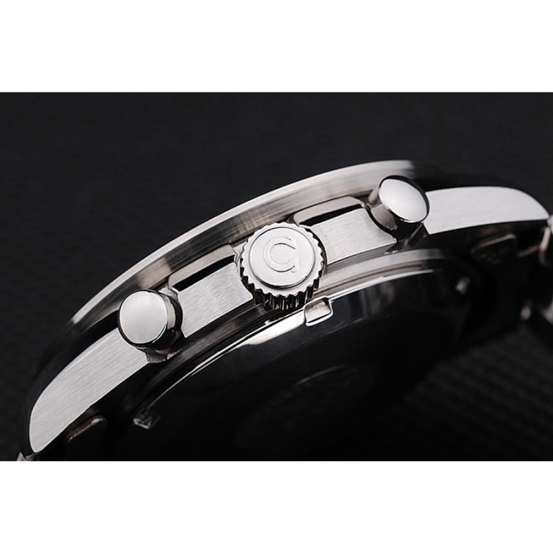 Corona: Pulido corona calado de acero inoxidable con el logotipo de Omega más dos coronas adicionales, uno a cada lado de ella