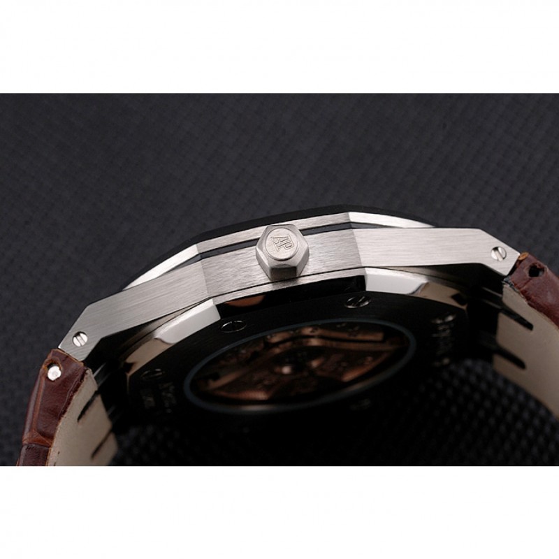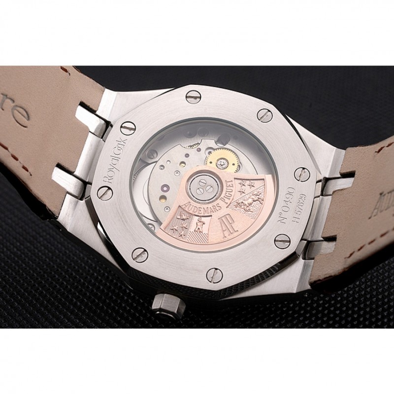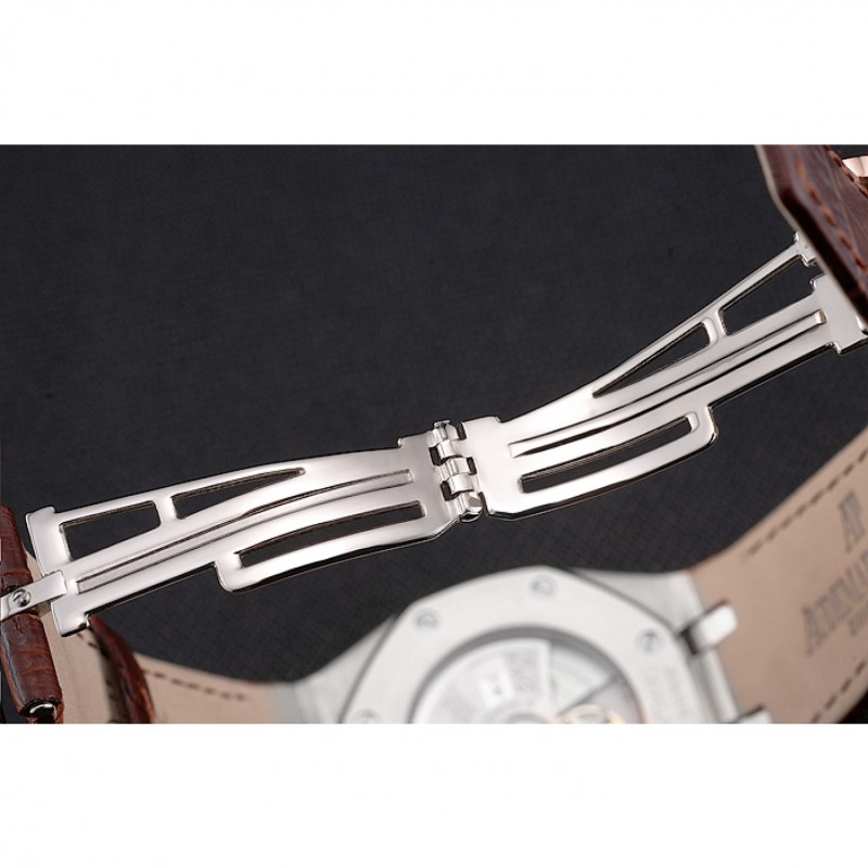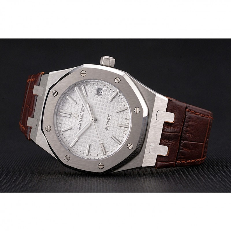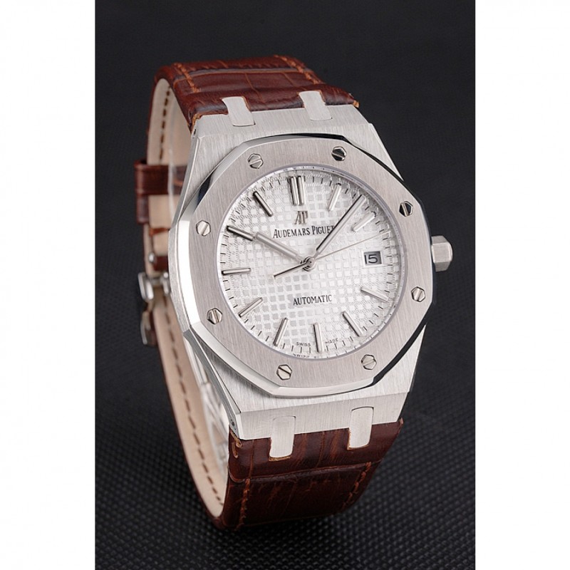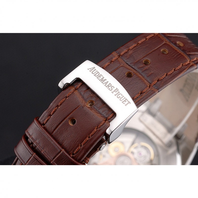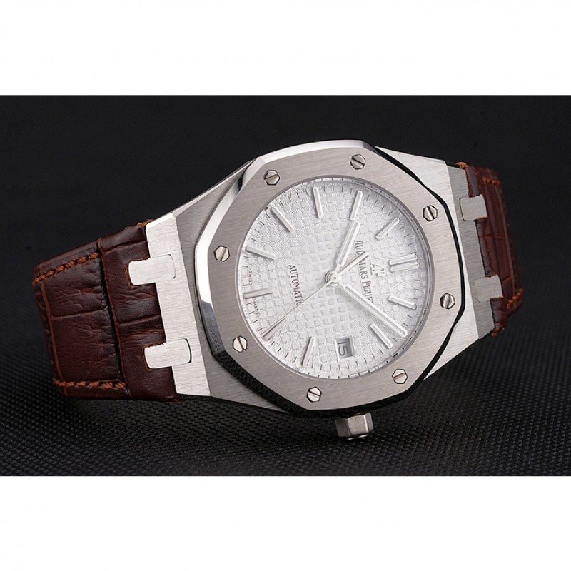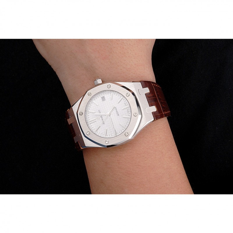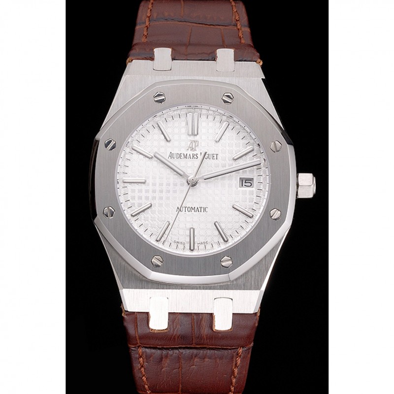 AAA Réplicas Relojes Suiza Audemars Piguet Royal Oak Blanco Dial correa de cuero caja de acero inoxidable de Brown