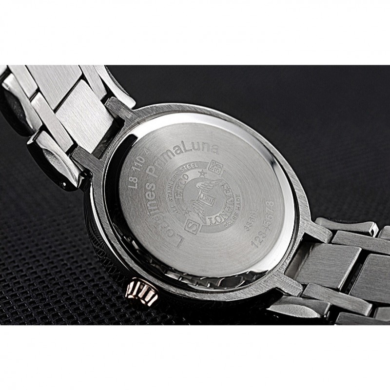 Volver: de acero inoxidable cepillado complemento de vuelta con Longines inscripción