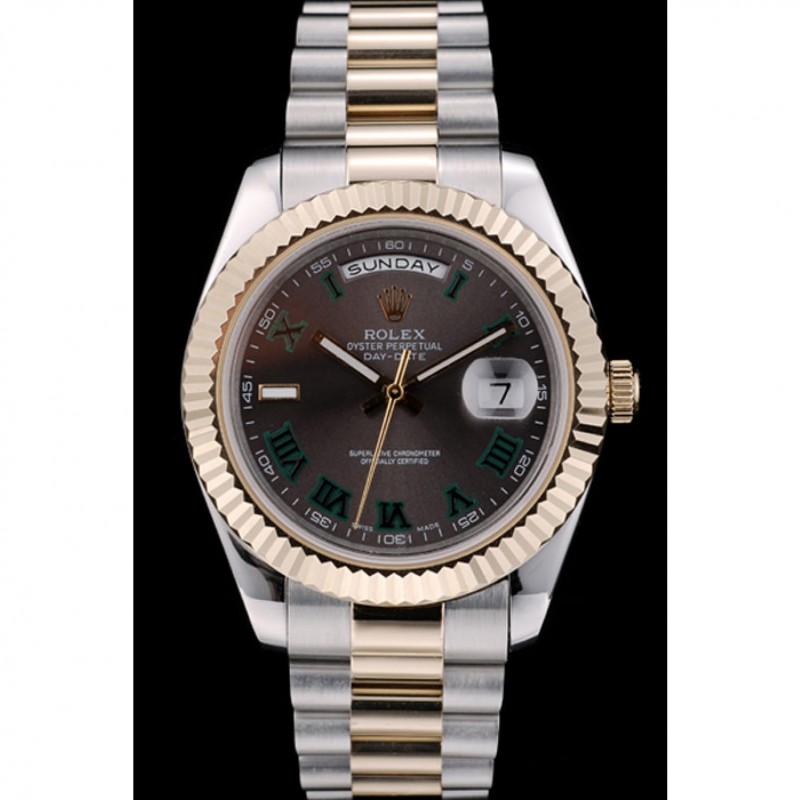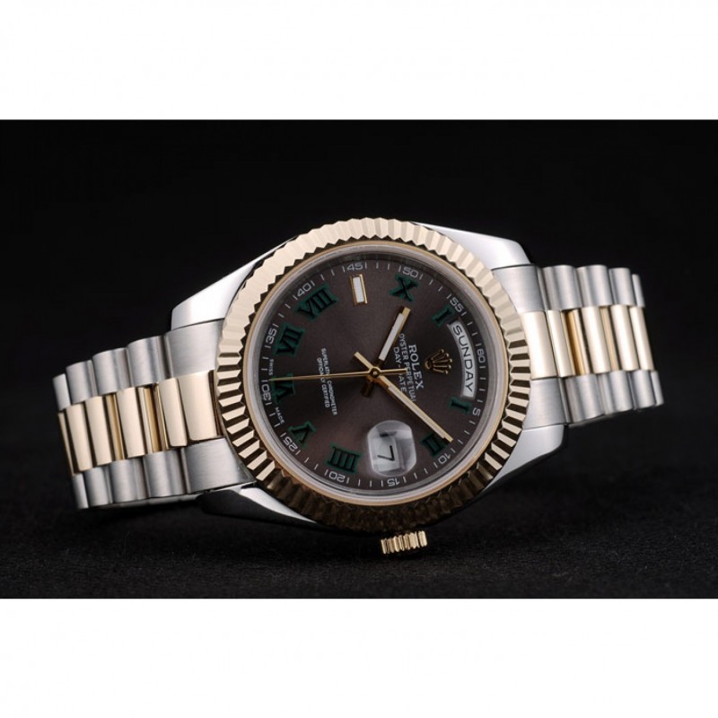 Acero Rolex DayDate suiza Oro inoxidable acanalado Bisel Esfera Gris 41909