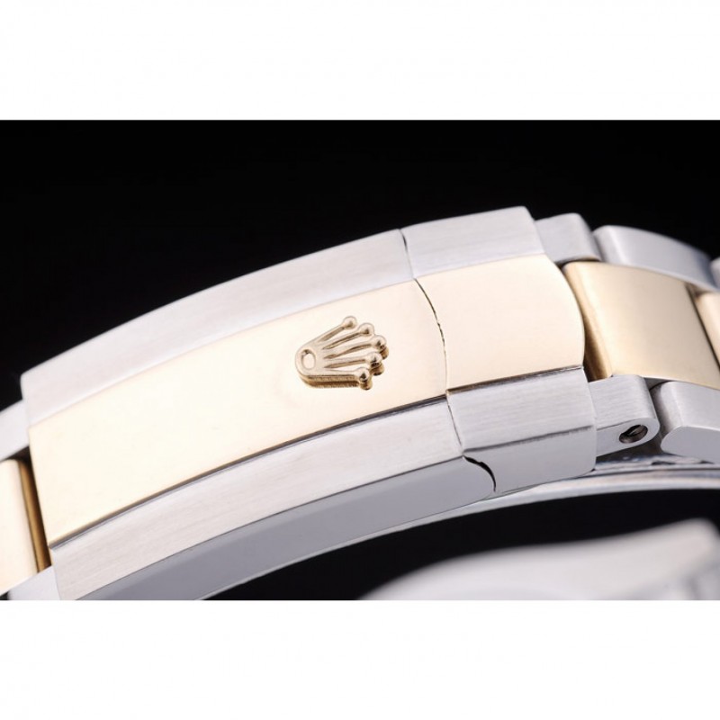 pulsera: cepillado de acero inoxidable y oro amarillo brazalete de eslabones con Rolex hebilla de despliegue logotipo